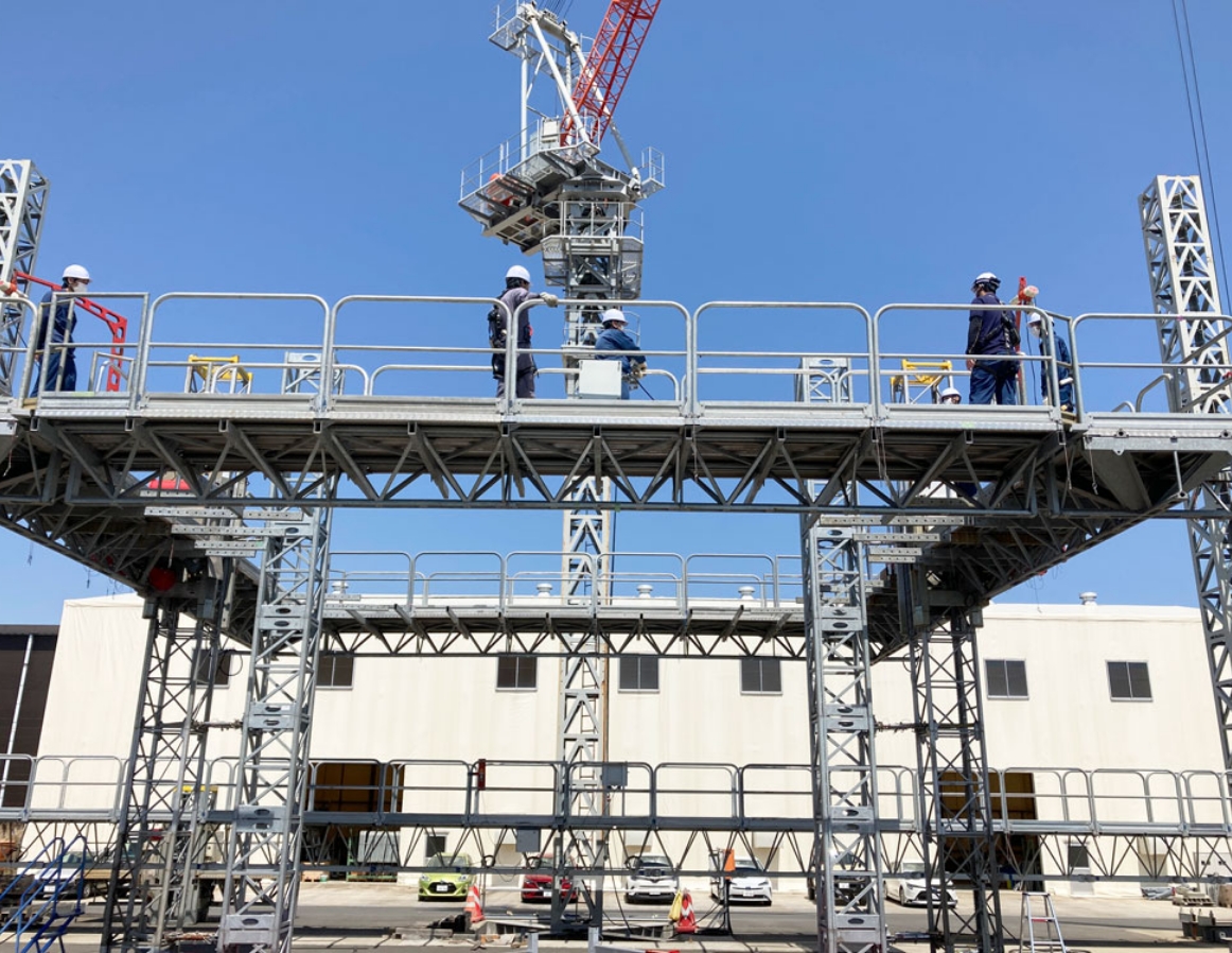 ⾼速道路・鉄道の橋脚の点検・⾼層喫煙や鉄塔などの点検・補修⼯事や⾼層建造物の外壁メンテナンスに最適な移動昇降式⾜場。